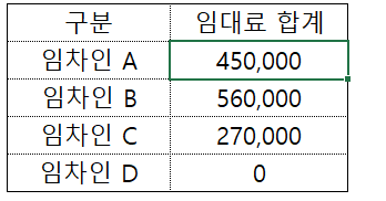 -> 활용 예) 미납한 임차인과 납부한 임차인의 합계 금액 구하기